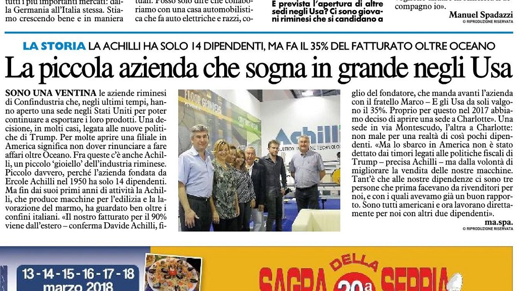 Achilli USA serárà el distribuidor oficial para todos los productos Achilli en Estados Unidos: de las cortadoras a puente másù grandes a las cortadoras portátiles y a la maquinaria para el pulido y abrillantado de los pavimentos.